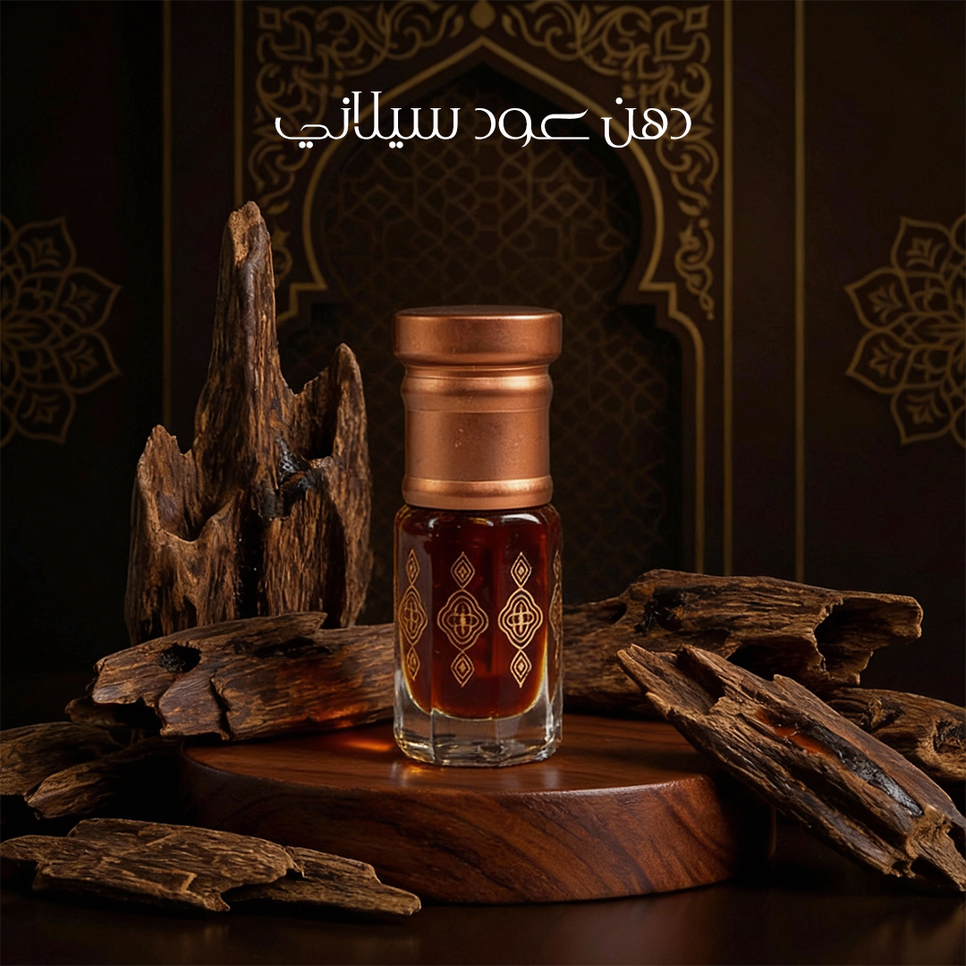 A premium Ceylon oud oil featuring a smooth and balanced aroma with light woody notes and a fresh, elegant character.